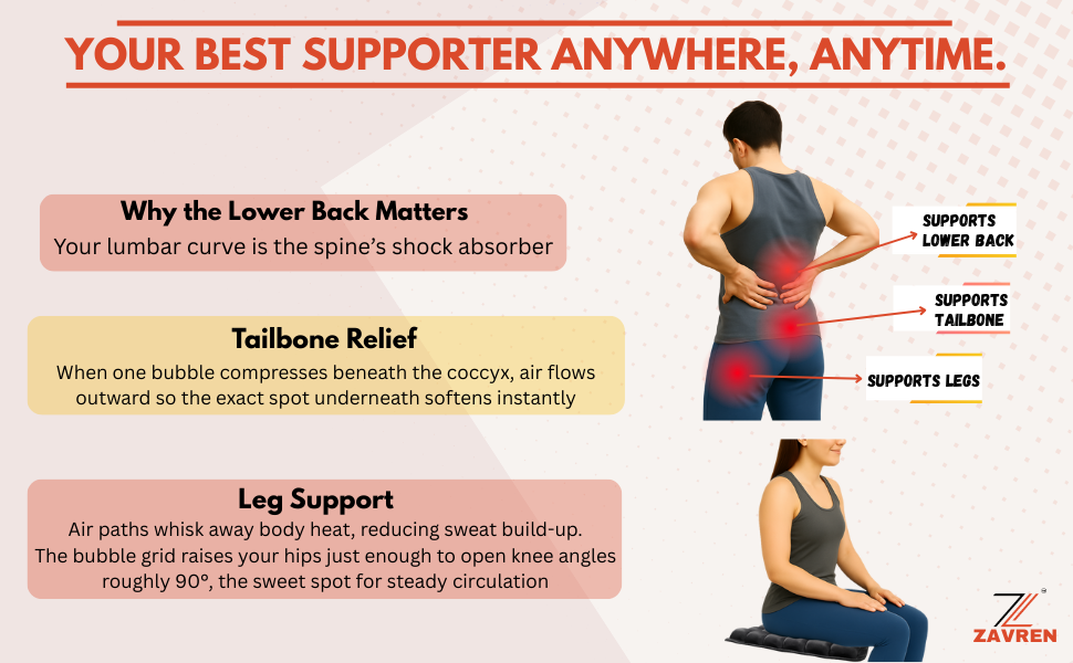 Supports Your Lower Back, Tailbone & Legs Anywhere!